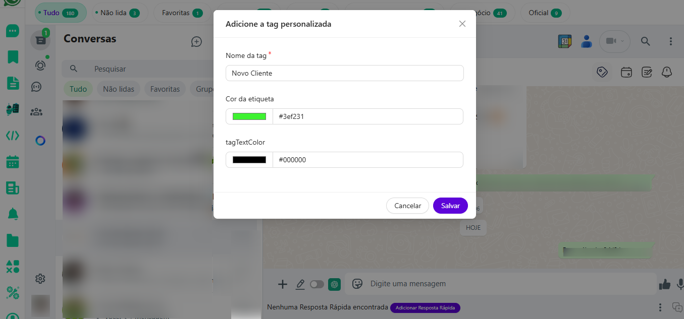 Use tags e etiquetas personalizadas para categorizar contatos, segmentar seu público e localizar informações importantes em segundos.